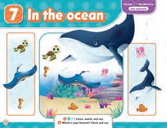 • Play the rest of the audio, pausing for students to find and circle the correct sea animals.