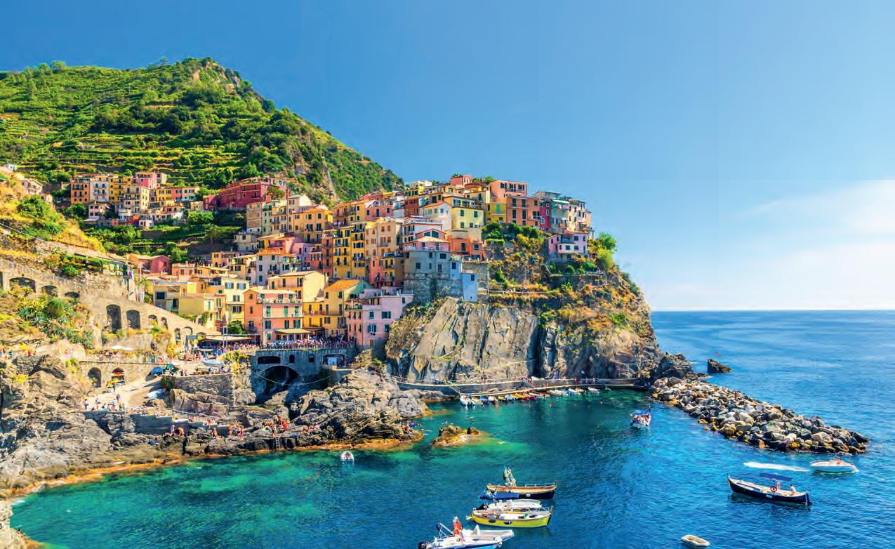 – Les Cinque Terre, un site magique Avec leur célèbre littoral inscrit au patrimoine culturel mondial de l’UNESCO, les Cinque Terre semblent comme sorties d’un livre d’images. Notre premier arrêt est Monterosso al Mare, le plus grand des cinq villages et le seul à disposer d’une plage de sable. En suivant la route panoramique qui serpente entre mer et vignobles, nous parvenons à Manarola. Nous ferons une pause prolongée dans les charmantes ruelles bordées de maisons aux couleurs pastel, avant de poursuivre notre route jusqu’à La Spezia.