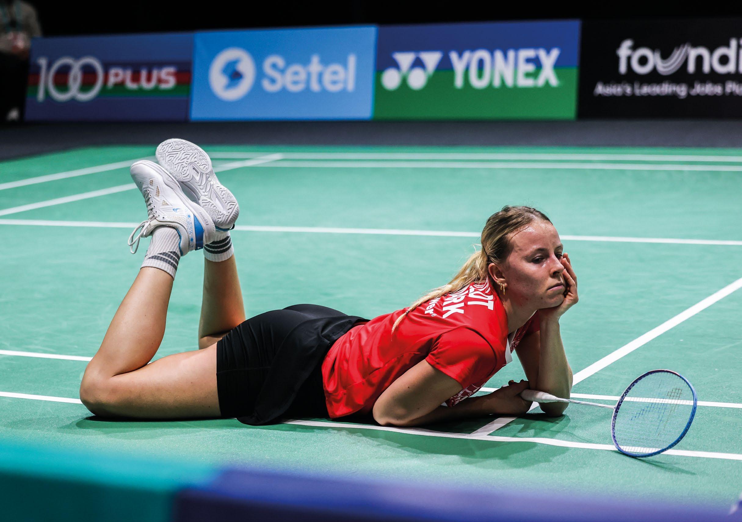 På den måde – med en blanding af ærgrelse, overskud og humor – adskiller billedet sig fra de fleste andre fra badmintonbanen, hvor glæde, frustration eller skuffelse er den naturlige auto-respons, når en duel, et sæt eller en kamp bliver afgjort.