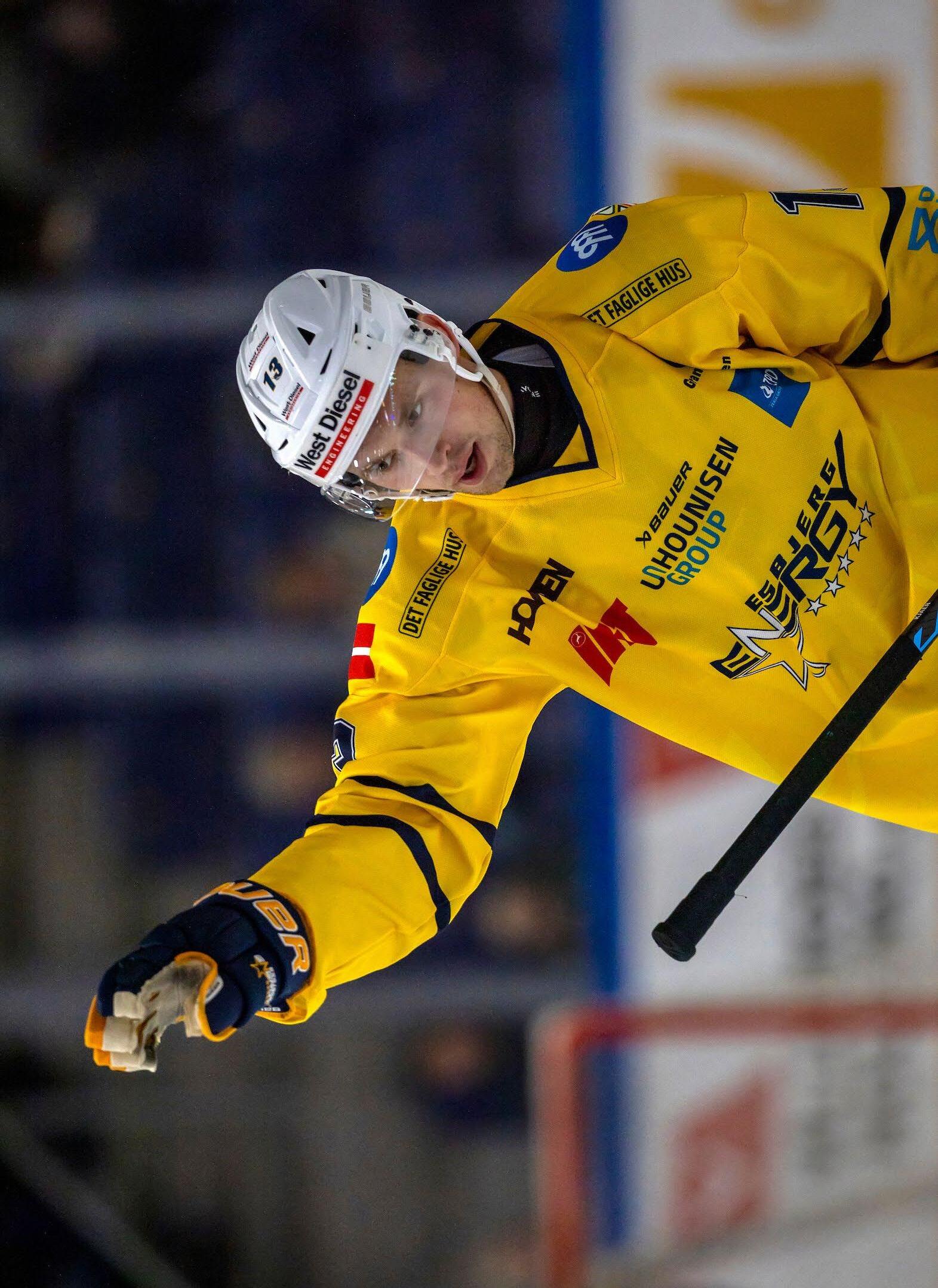 Oliver Kjær returnerede sidste sæson fra finske SaiPa til Esbjerg og producerede mere end et point pr. kamp i grundspillet. Også i denne sæson har den 183 cm høje center produceret mere end et point pr. kamp.