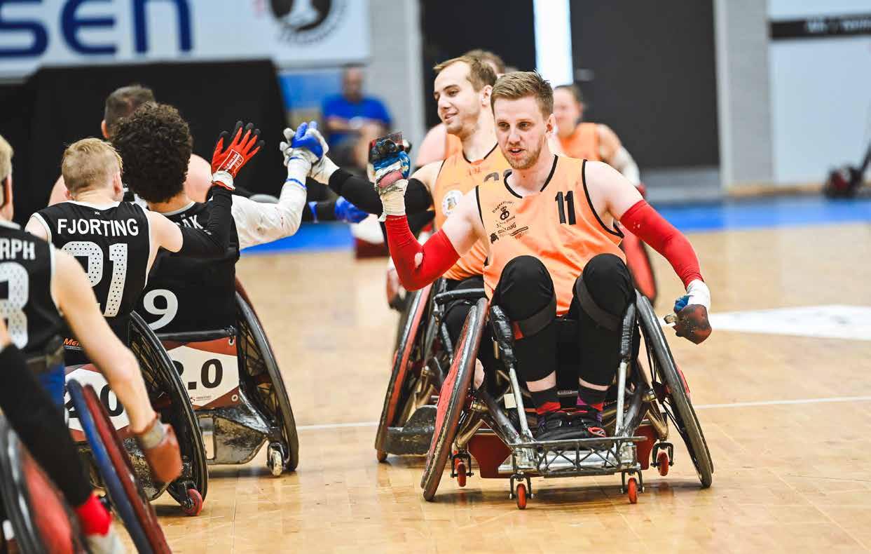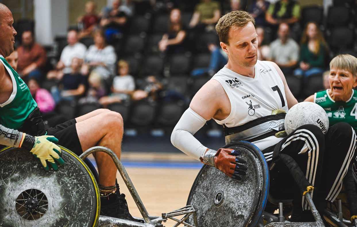 PÅ DEN BAGGRUND kunne det umiddelbart være fristende at inkludere para-mesterskaber i almene mesterskaber så ofte, som det overhovedet er muligt. Vi skal imidlertid kun godt et år tilbage, hvor Vejle lagde baner til VM i kørestolsrugby. Et stævne med kampe transmitteret på DR og haller fyldt med betalende tilskuere, og et stævne, der fik enorm ros fra deltagerne også. VM i almen rugby er en kæmpe begivenhed, hvor vi kan være i tvivl om, hvorvidt et inkluderet VM i kørestolsrugby ville drukne i den kæmpe event, som et VM i rugby er.
