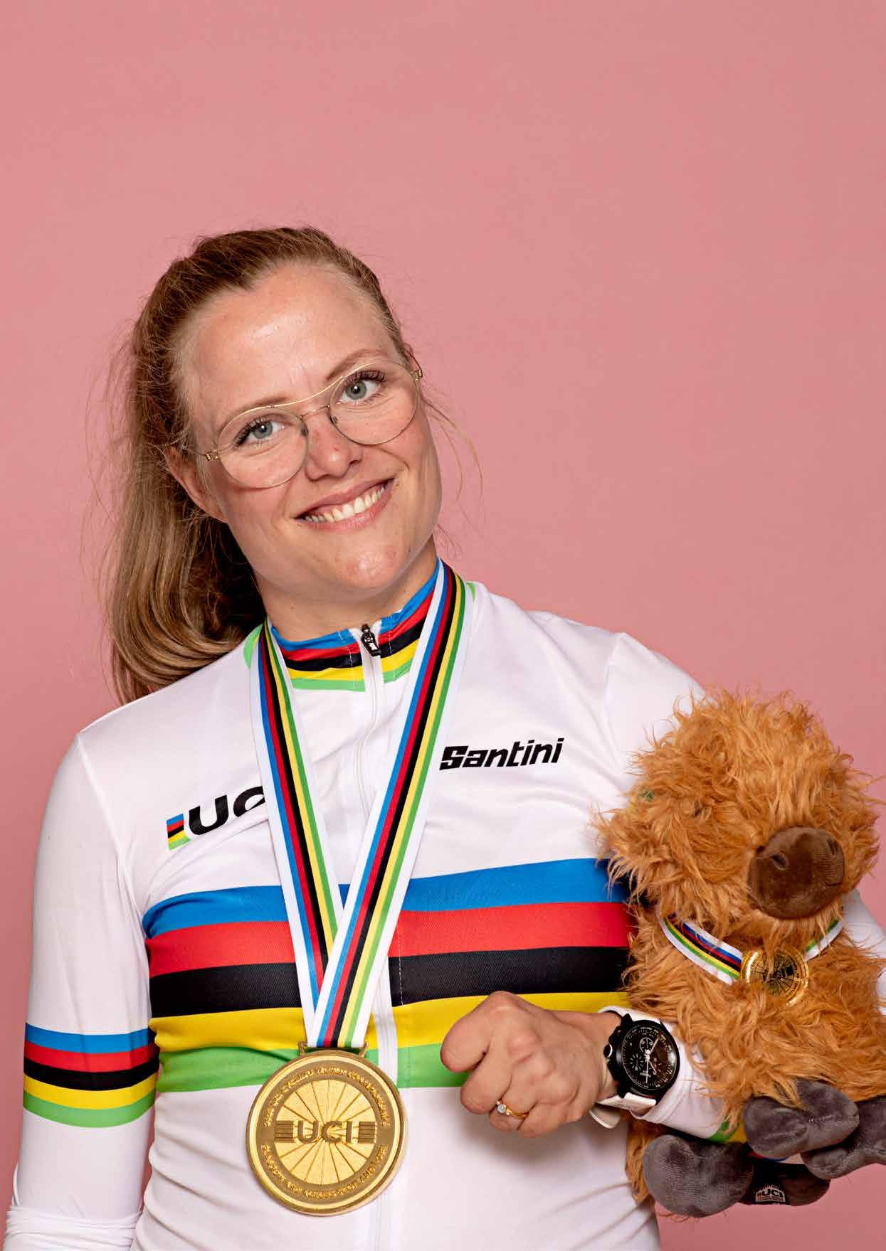 – Jeg kan lide at være fri, og det er fantastisk at kunne cykle ude i den friske luft og nyde naturen. Og så det at jeg kunne cykle med min familie. Og når man kan se, at man rykker sig, og at der er et mål forude, EM, VM, PL eller hvad det nu er, så kommer der bare mere gnist og gejst, siger hun.