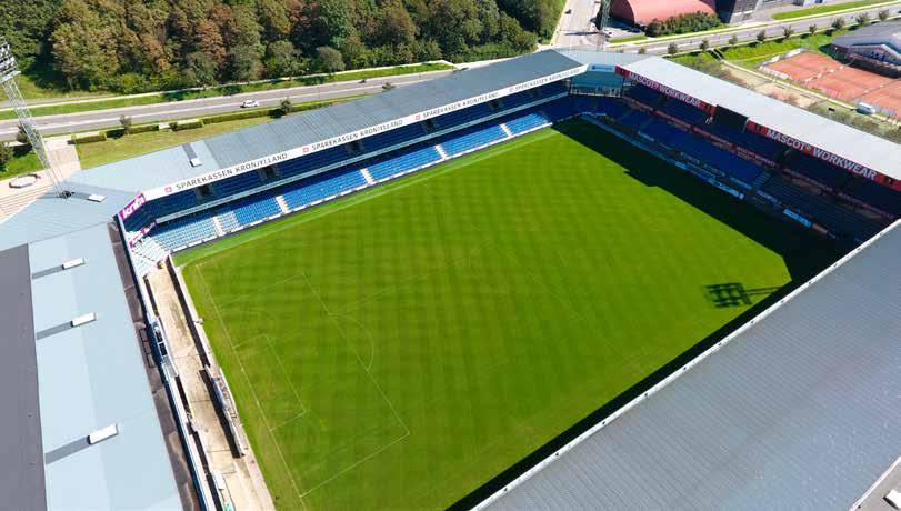 at de er af plastik, mens resten er naturgræs. Det skaber en stærkere overflade, som også kan holde til spil i de perioder, hvor der ikke er særlig meget vækst i græsset. Når der laves glidende tacklinger og græsset ryger af, er det ikke rødderne, der bliver rykket op, men derimod græsset, der bliver skåret over. Det giver banen mulighed for hurtigere at blive genetableret, fortæller Søren Pedersen.