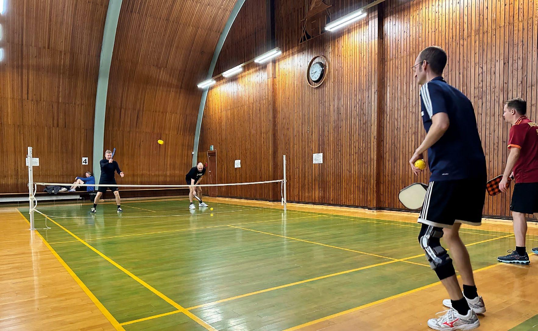 Pickleball er en blanding af alt det bedste fra tennis, badminton og bordtennis og bolden minder om den,som bruges til floorball. Der kan spilles både single og double.