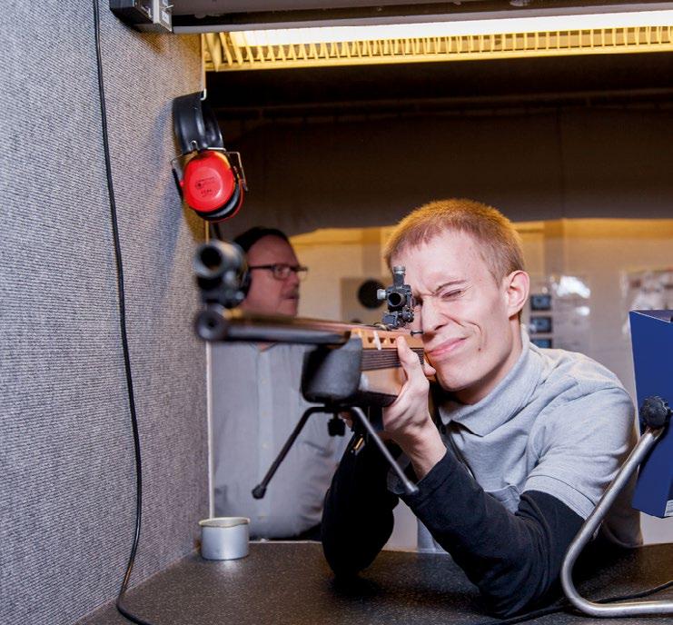 Hos firmaidrætten i Sønderborg forgår riffel- og pistolskydning på banerne i Humlehøjhallens skydelokale i kælderen.