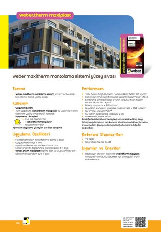 • Tüm yapılarda, weber.therm maxipower ısı yalıtım levhaları üzerinde yüzey sıvası olarak kullanılır. Uygulama Yüzeyleri İç ve dış cephelerde; - weber.therm maxipower ısı yalıtım levhaları Diğer tüm uygulama yüzeyleri için bize danışınız.