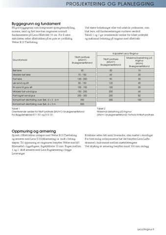 Ved større belastninger eller ved ustabile jordmasser, som bløt leire, må fundamenteringen vurderes særskilt. Tabell 1 og 2 gir orienterende verdier for tillatt jordtrykk og maksimal belasting på ringmur med såleblokk.