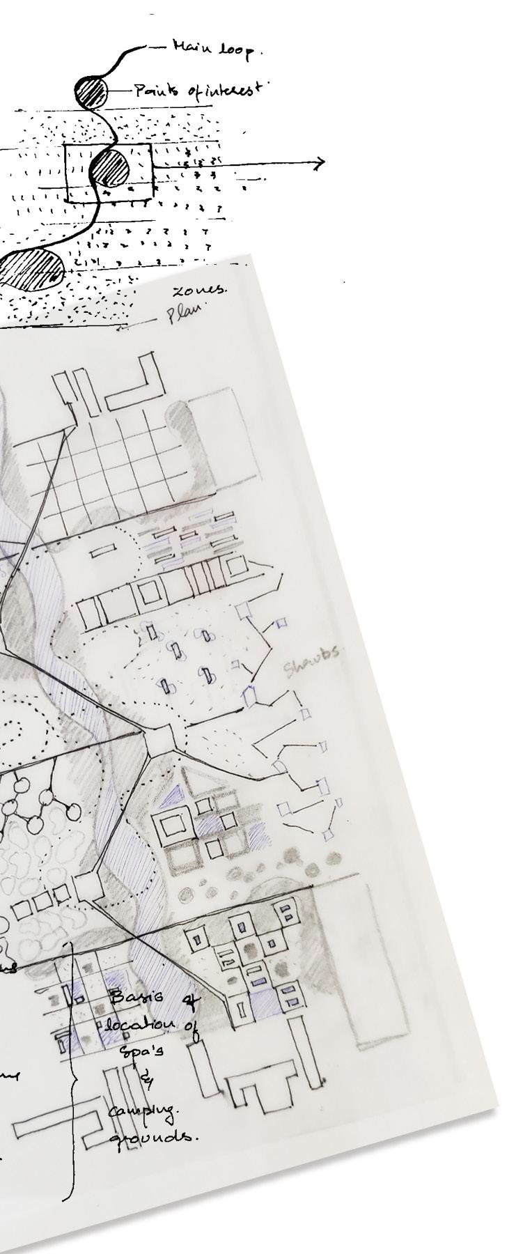 strategy – density and mixtures as well the program matrix is developed further as we zoom to one of those pixelated diagram shows the intensity and density of zones with various programs. The strategy simple techniques of weaving of multiple layers - various programs like Spa, built types to support them, bath and edge conditions that favour them, green spaces tht address birds, marshes and wetlands connectivity of these elements creating density and mixtures. was in a field, now the program itself begins with the field.