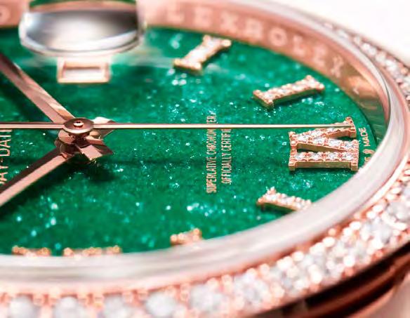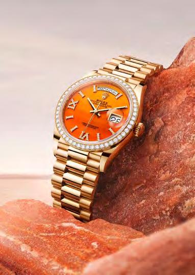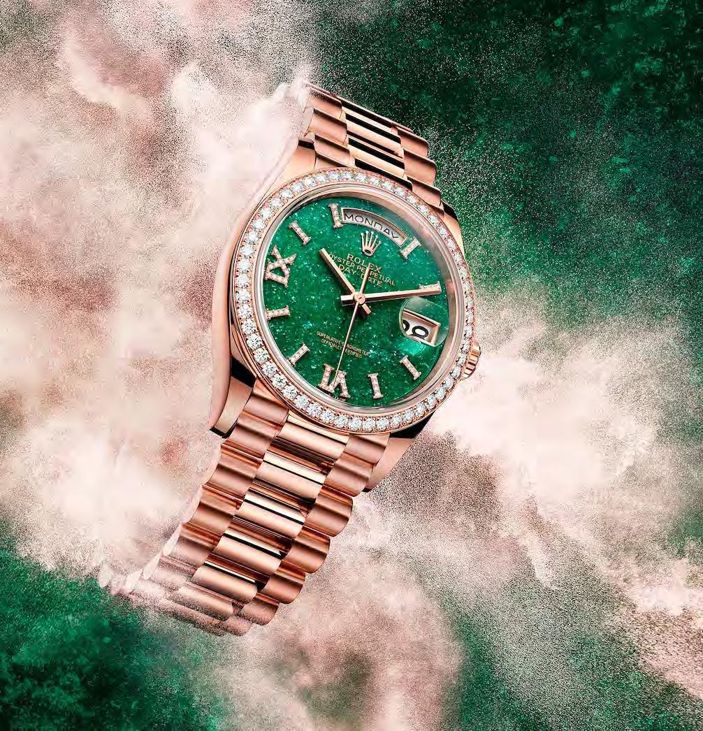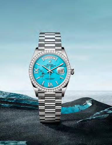 The new Oyster Perpetual Day-Date 36 welcomes dials made of decorative stone in shimmering tones that evoke the atmosphere of the Mediterranean coast. Green aventurine, carnelian and turquoise are paired with watches in 18 ct Everose, yellow and white gold respectively. As expressions of Rolex’s dialmaking expertise, the new Day-Date 36 watches are also testament to the brand’s perfect mastery of the gem-setting art.