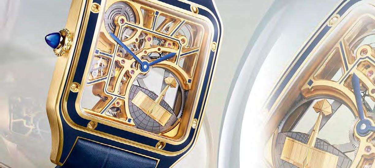 Louis Cartier designed the iconic Santos watch in 1904 for pioneering Brazilian aviator Alberto Santos-Dumont. Revisited over the years, the three Santos-Dumont models for 2023 respect many of the original’s design cues but strike a modern chord with their skeletonised movements. Available in steel, pink gold and a limited edition in a yellow gold case with blue lacquer, the Santos-Dumont is equipped with a new, specifically developed automatic skeletonised movement with a unique microrotor that pays homage to the aviator.