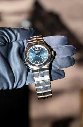 The Vacheron C onstantin Moon Phase Retrograde Date brings about a novelty for the brand, being their first sports watch with a retrograde complication. At the crossroads between technical sophistication and the pursuit of aesthetic principles, this sportyelegant steel watch combines an astronomical complication – the precision moon phase – with a true signature of the Maison: the retrograde display. Depicting two gold moons and a star-studded sky, this poetic complication only needs adjusting every 122 years. Thanks to its folding clasp and three straps – steel, leather, and rubber – equipped with a self-interchangeable system, the watch can be personalized according to the owner’s wishes.