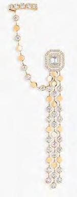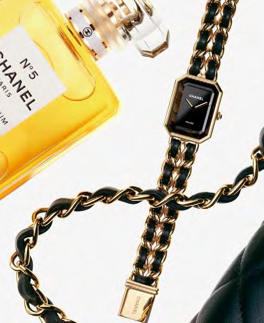 A geometry directly inspired by the stopper of the N°5 perfume bottle, which in turn recalls the outline of place Vendôme, which Gabrielle viewed from her suite at the Ritz. This icon is joined by another one: the interwoven leather and chain strap of the iconic quilted bag. The Première makes it its flexible bracelet, fitted with an incredibly refined clasp. Thus the Première plays with these icons to create a new one, one that will endure the test of time.