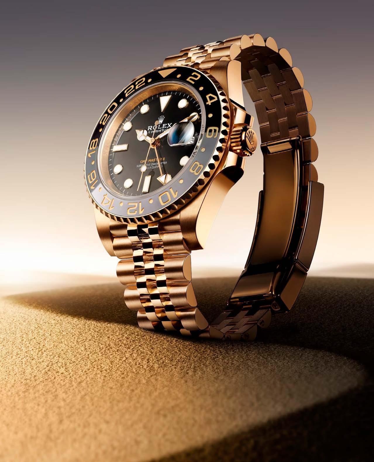 Met de GMT-Master II kan de drager de tijd in een andere tijdzone bekijken. Dit horloge markeert onze verbinding met de wereld. Het model is nu verkrijgbaar in twee nieuwe versies: één in 18 kt geelgoud en één in geel Rolesor. Beide zijn uitgevoerd met een Cerachrom-bezelring van grijze en zwarte keramiek, een compleet nieuwe kleurencombinatie.