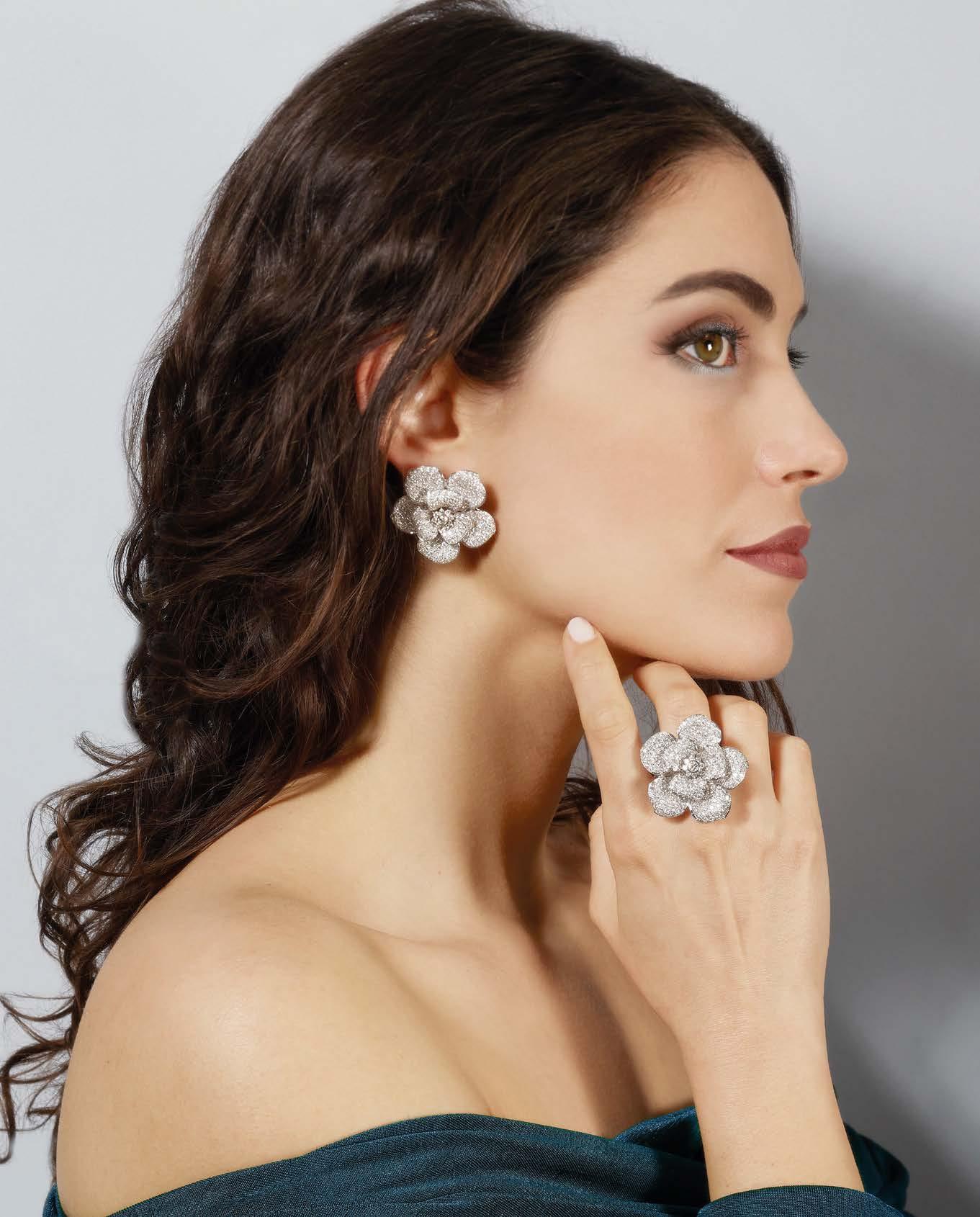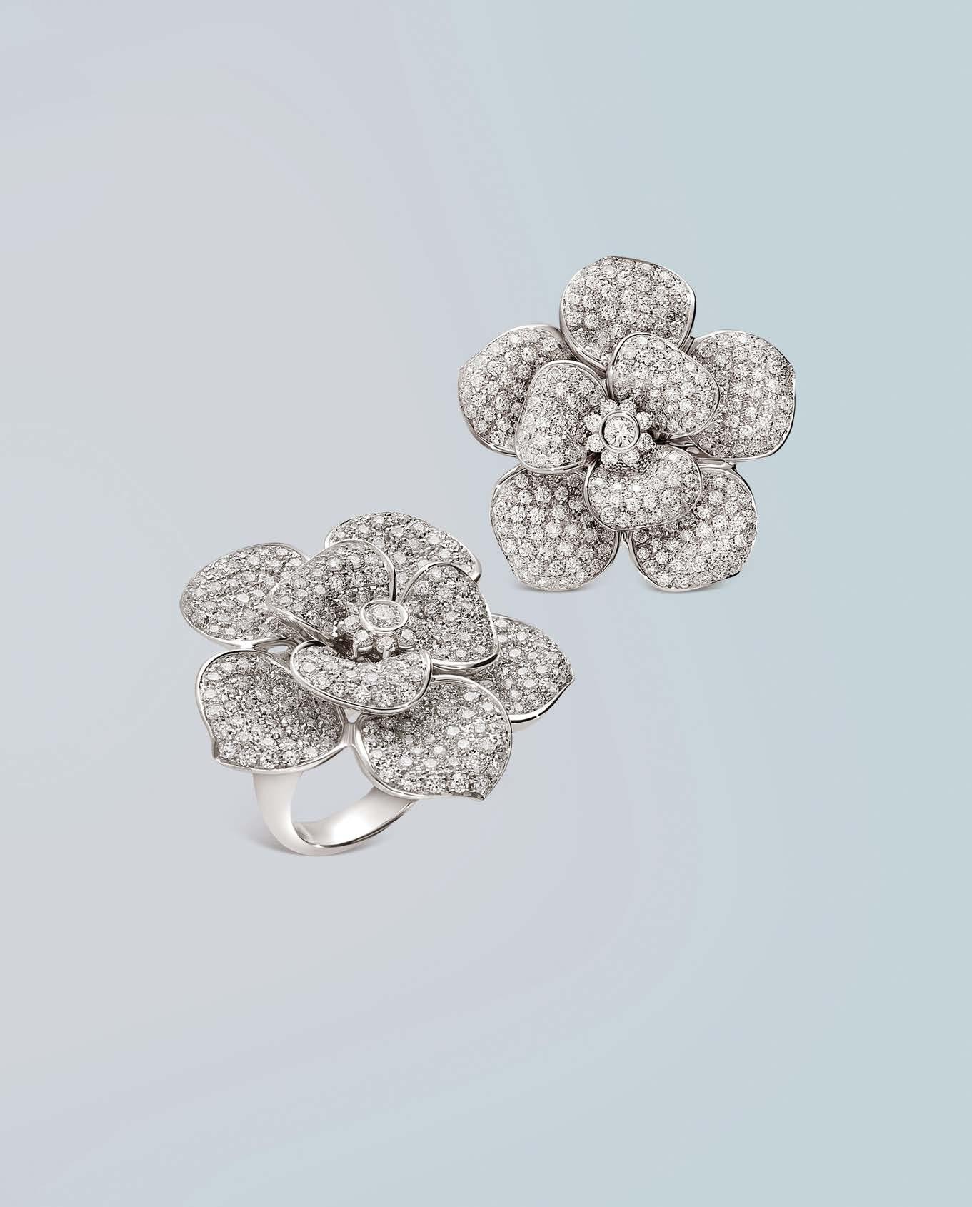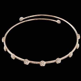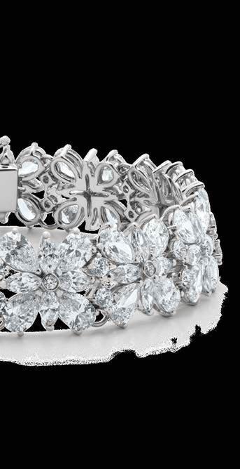 Dit adembenemende diamanten collier neemt de vorm aan van delicate bloemen. Het juweel is met uiterste precisie vervaardigd, waardoor elk bloemblaadje tot in de kleinste details tot leven komt. Het bijzondere stuk verenigt de ongeëvenaarde kracht van diamant met de tijdloze schoonheid van de natuur, en wanneer het om je hals rust, straal je als nooit tevoren.
