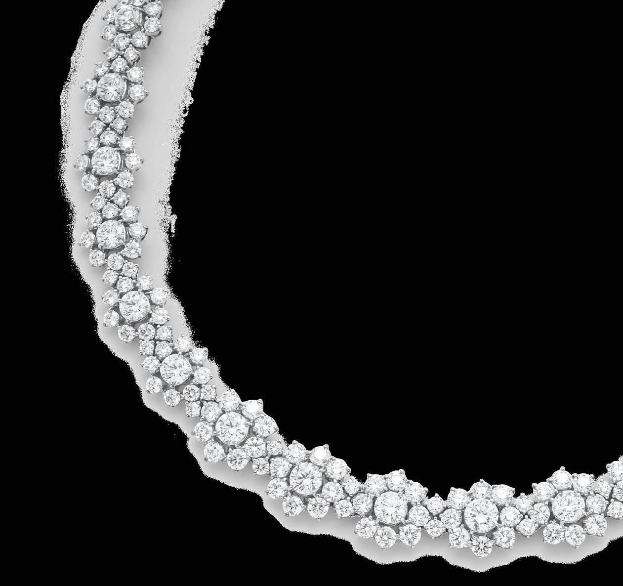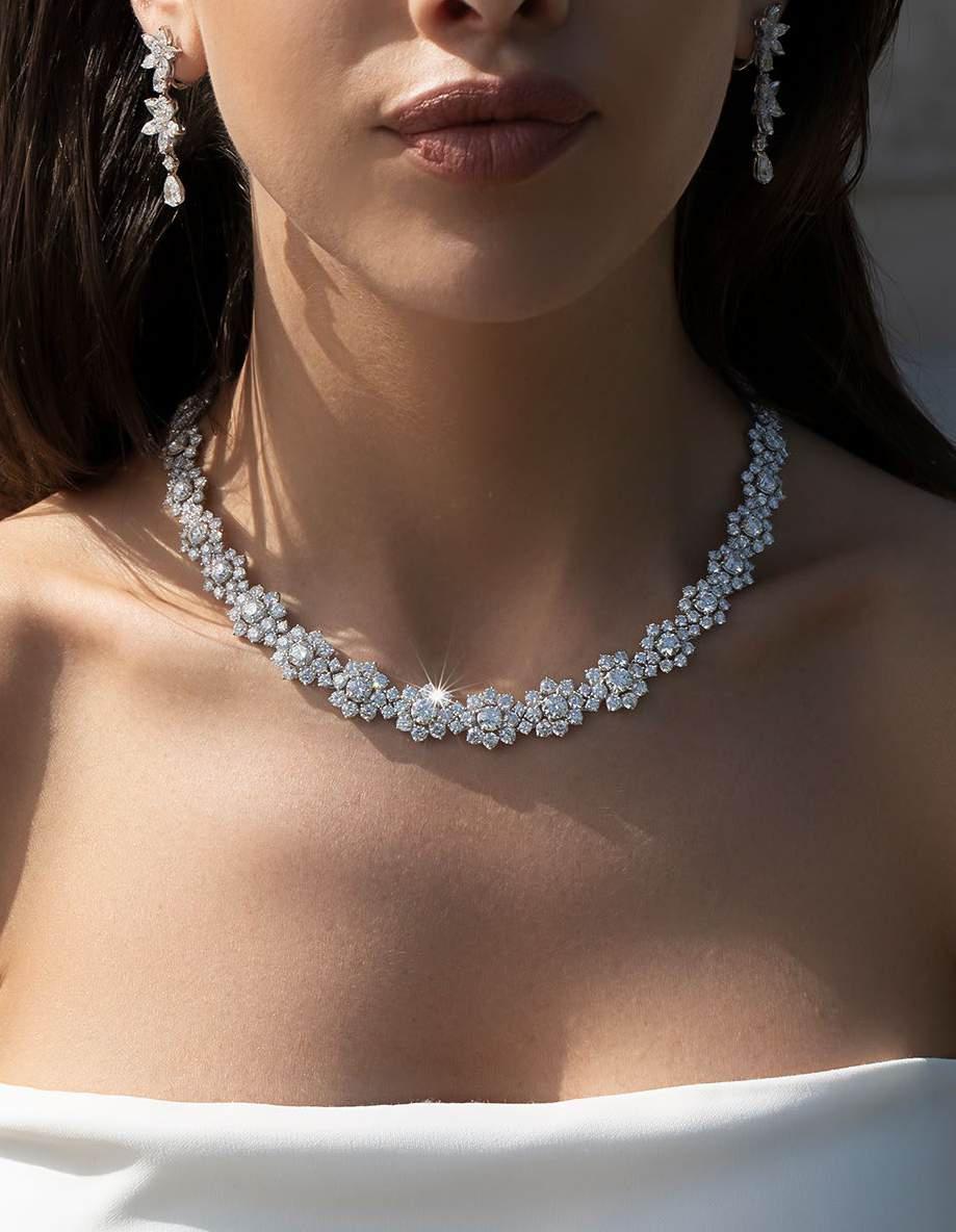 This breathtaking diamond necklace blossoms into delicate flowers. It was crafted with great precision, bringing each petal to life down to the smallest detail. The extraordinary piece unites the unparalleled power of diamonds with the timeless beauty of nature. As it graces your neck, you will shine like never before.