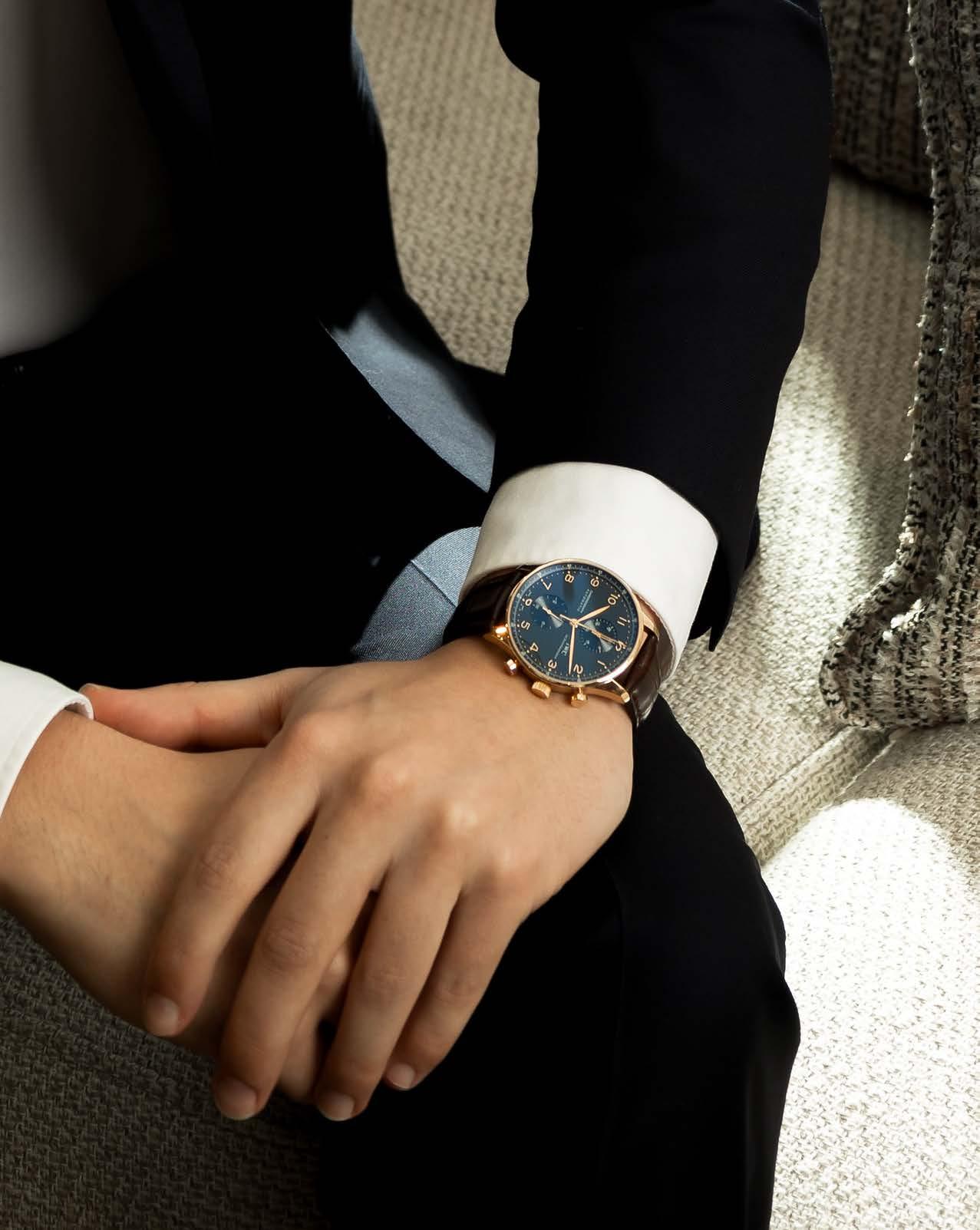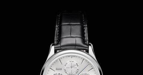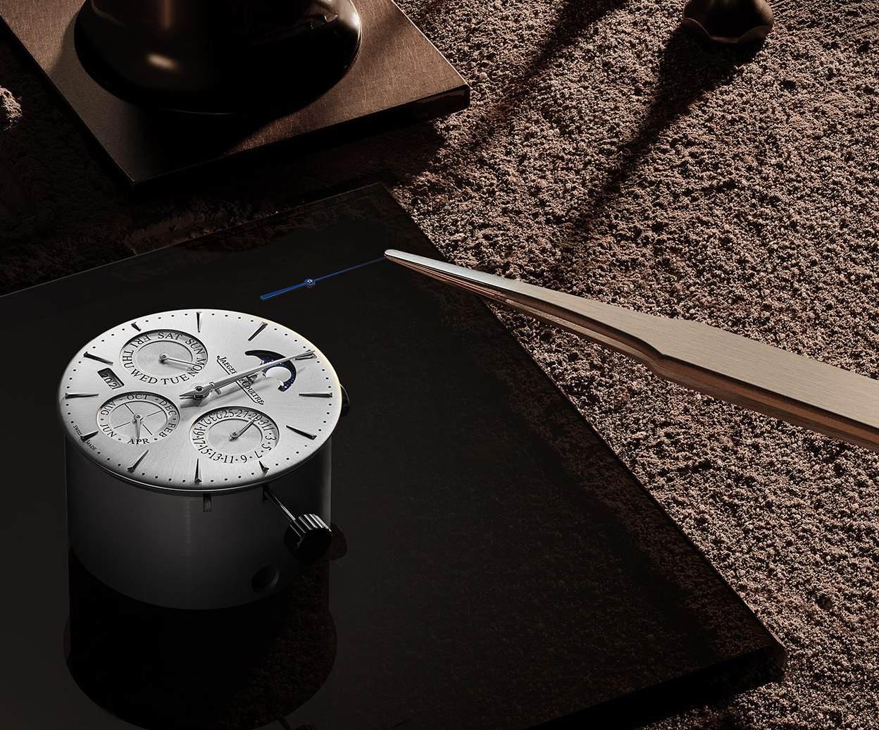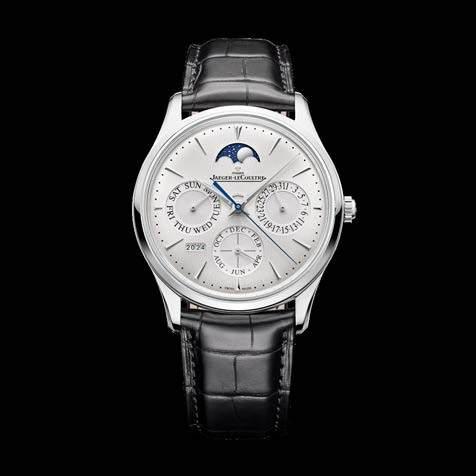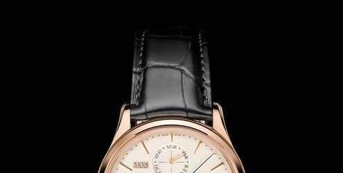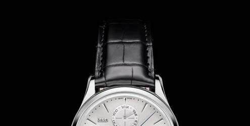 Revisiting the sharp aesthetic of the eponymous collection, the Master Ultra Thin Perpetual Calendar features an eggshell dial matching the pink gold case, which stands in elegant contrast to the black alligator strap and is extremely comfortable to wear. The golden hands with a double satin-polish finish and blue central seconds hand fly over the three sub-dials showing the date at 3 o’clock, the day of the week at 9 o’clock and the month at 6 o’clock. Featuring a moon phase at noon and a perpetual calendar, this refined complication watch is equipped with in-house Calibre 868, offering 70 hours of power reserve.