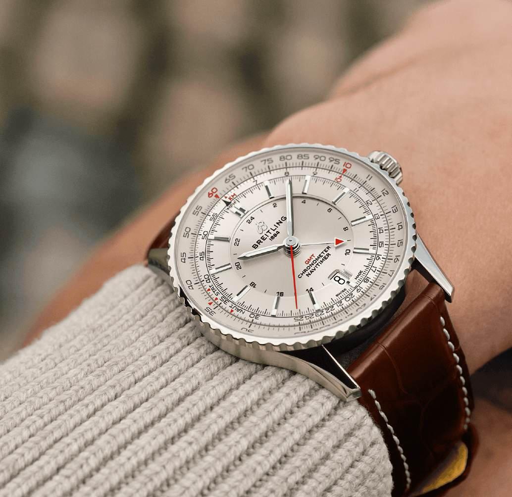 The Navitimer Automatic and Automatic GMT 41 distill the iconic look, omitting the chronograph yet preserving a balanced dial composition. The central placement of the 24-hour scale on the GMT and the Automatic’s clean face, ensure the intricate slide rule stands out while streamlining the overall aesthetics.