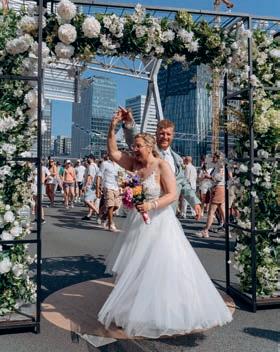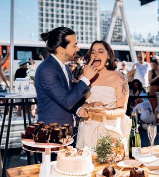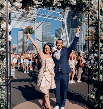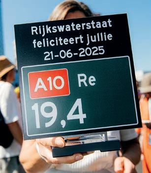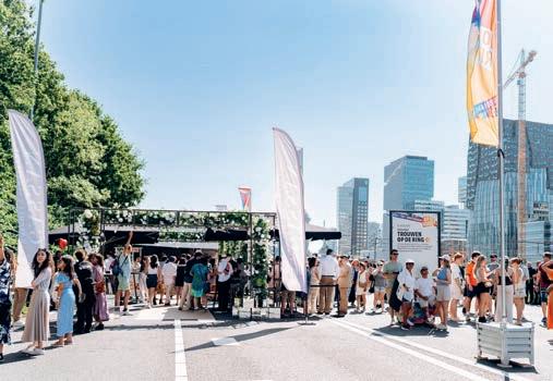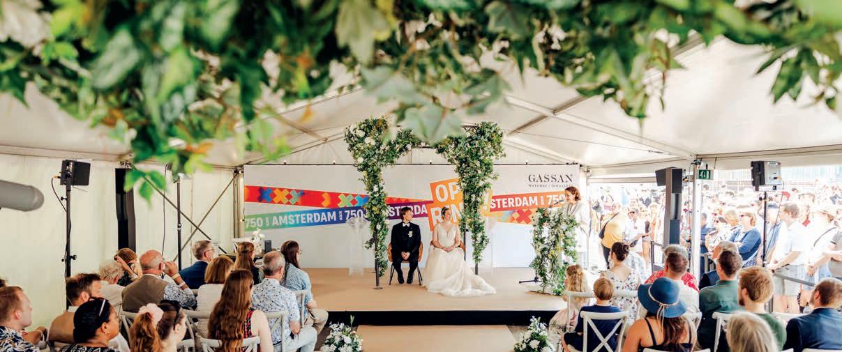As part of the Festival on the Ring, a section of the motorway near kilometre marker 19.6 was converted into a one-of-a-kind wedding venue for twenty couples and their guests. For the rst couple, Wesley and Regina, the day was especially memorable: they were the only pair to be o cially wed by Mayor Femke Halsema. With rings exchanged and a heartfelt “yes,” they sealed their vows at this unique location, surrounded by family, friends and, of course, the city of Amsterdam itself.