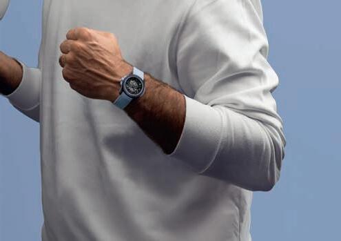 “A blue opalin dial contrasts perfectly with the white ange, creating a bold yet sleek visual.”