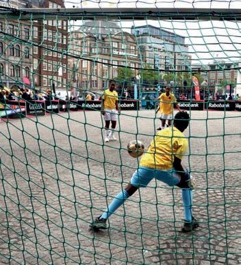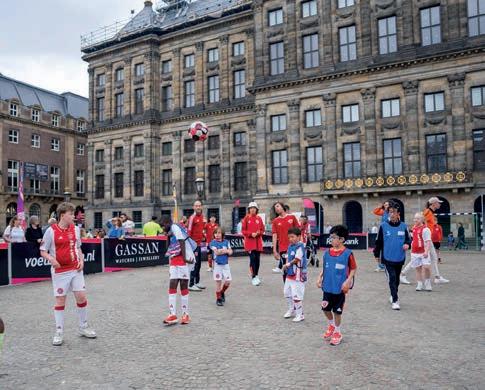 In the morning, Girls Weesp and Boys East li ed the trophy in the 10–12 age category. Later that a ernoon, Girls Southeast and Boys North were crowned champions in the 13–15 category. It was an unforgettable day lled with music, sports clinics, and, above all, football. For one day only, Dam Square was transformed into street football heaven for Amsterdam’s youth.