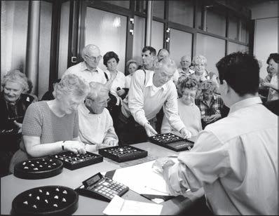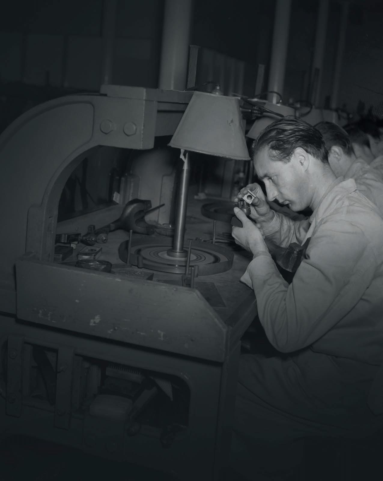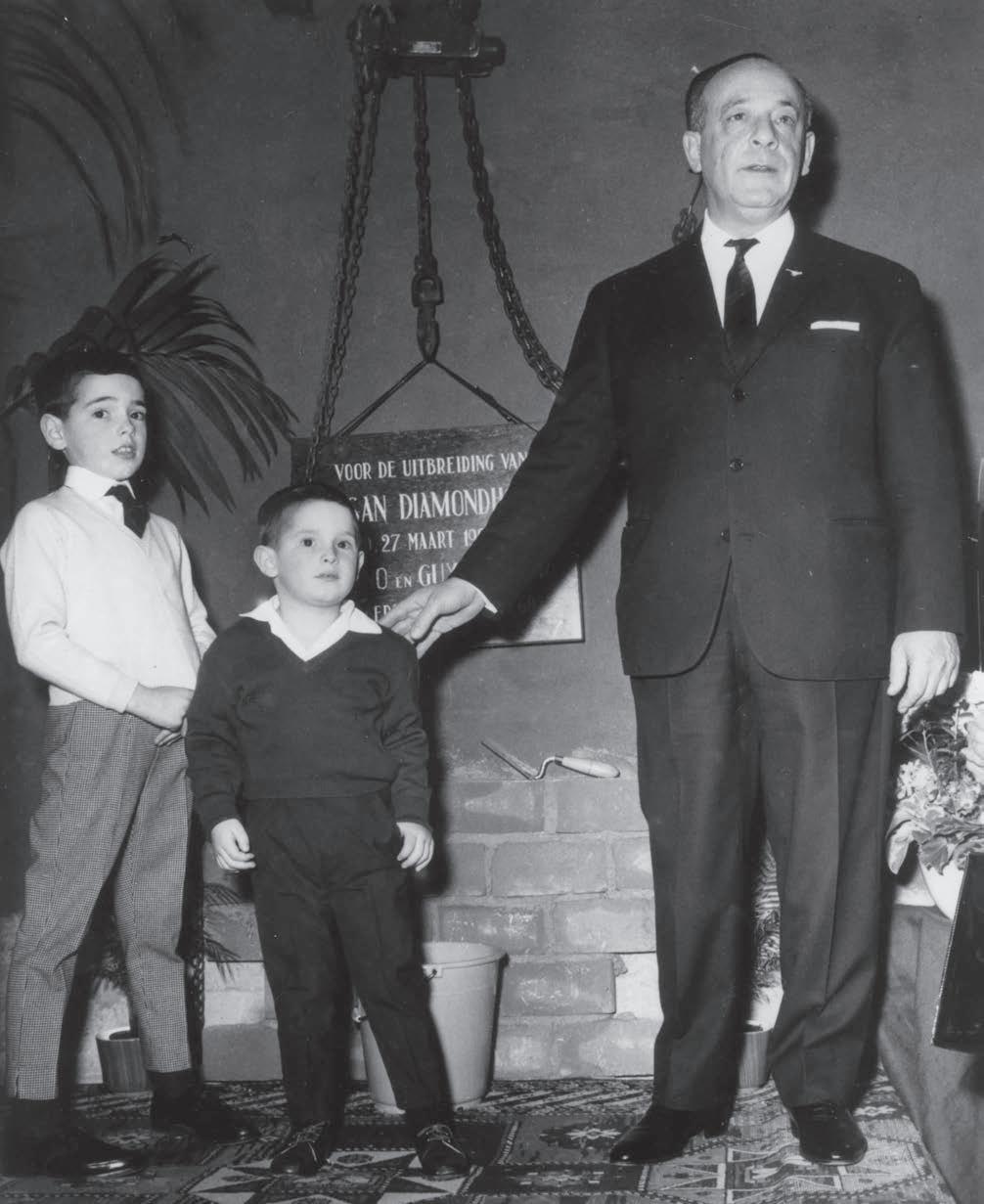 In 1955, Samuel moves his business to the former diamond-cutting factory of Jacob Soep on Nieuwe Achtergracht. Around this time, he begins o ering guided tours for interested visitors and tourists, an innovative move that opens the diamond trade to the public. On a personal note, 1955 is also a joyful year for Samuel, as he becomes a grandfather.