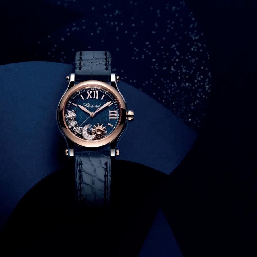 The Happy Sport collection is the emblem of Chopard’s creativity and boldness. Its playful, free-spinning gems, dancing between two sapphire crystals, have captured the imagination since 1993, when Chopard became the first Maison to combine steel and diamonds. Its watchmaking expertise has enabled Chopard to equip the Happy Sport Sun, Moon and Stars with a mechanical movement featuring an automatic winding mechanism specially developed for feminine cases. Little Diamonds Do Great Things.