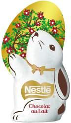 Lapin chocolat au lait Nestlé, Lapin chocolat noir Nestlé, Lapin Kit Kat, Lapin Smarties ou Poussin Smarties 85 g. Le kg : 30,47 €. Par 2 (170 g) : 3,42 € au lieu de 5,18 €.