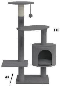 Dim. : L. 40 x l. 40 x H. 110 cm env. Comprend : 3 plateformes, une couchette et une balle suspendu.
