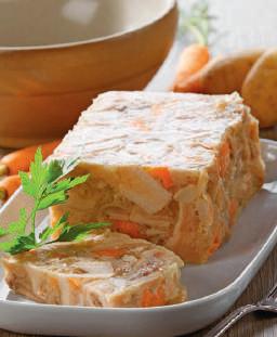 En gelée délicate, Les terrines du jardin au cœur de légumes ou Les terrines du jardin 600 g. Le kg : 4,60 €.