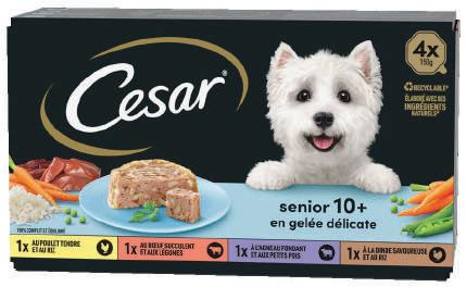 Saveurs bœuf et fromage 140 g. Le kg : 12,29 €. Par 3 (420 g) : 3,44 € au lieu de 5,16 €. Le kg : 8,19 €. Également disponible en variétés Saveurs poulet et canard 130 g (le kg à l'unité : 13,23 €) ou Saveurs bœuf et volaille 155 g (le kg à l'unité : 11,10 €)