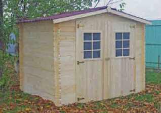 En sapin d'Epicéa d'ép. 20 mm. Dim. (hors tout)(2) : L. 275 x l. 224 cm x H. 212 cm. Dim. int. : L. 240 x l. 195 cm. Dim. ouverture de porte double avec lucarne : L. 160 x H. 179 cm. Couverture de toit : plaque ondulée. Sans plancher. Vendu brut à lasurer.