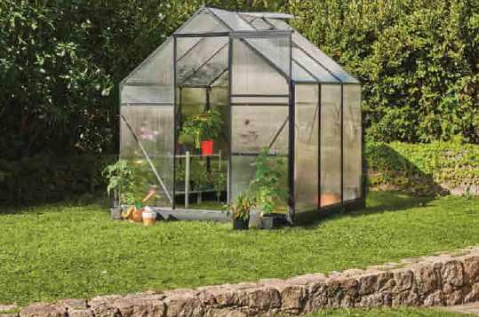 Profilés en aluminium et panneaux en polycarbonate. Avec porte coulissante et fenêtre de toit. Dim. (hors tout)(5) : L. 190 x l. 190 x H. 207 cm. Dim. int. : L. 184 x l. 184 x H. 190 cm. Dim. porte : l. 61 x H. 172 cm. Vendue vide.