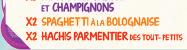 Risotto aux panais et champignons, spaghetti bolognaise, hachis parmentier 1,380 kg Le kg : 6,80 € Par 2 (2,76 kg) : 13,15 € au lieu de 18,78 €. Le kg : 4,76 €. Également disponible en variétés Risotto courgettes saumon mozzarella, légumes cabillaud, pommes de terre choux-fleurs, Blanquette de volaille, paëlla, carottes et pâtes ou Légumes pâtes cabillaud, carottes macaroni bœuf, légumes riz poulet 1500 g (le kg : 6,26 €)