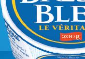 4€,93 (1) 3€,25 - 34 % BRESSE BLEU LE VÉRITABLE 30% MAT.GR.(2)(3) Au lait de vache pasteurisé. 200 g. Le kg :