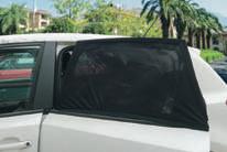 Pare-soleil textile facile à installer. Permet l'ouverture de la vitre arrière tout en restant protégé du soleil. Extensibles, s'adaptent à la majorité des portières.