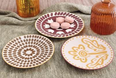 En grès. Existe aussi en : Assiette creuse 20 cm au prix de 2,50 Assiette dessert 19 cm au prix de 1,90 . Plat ovale 30,5 cm au prix de 4,90 . Saladier 23 cm au prix de 3,90 . Mug 32cl au prix de 1,50 . Bol 47cl au prix de 1,90