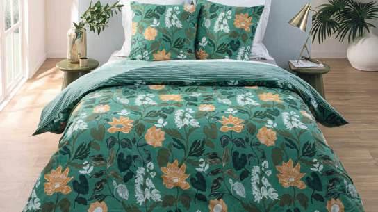 1 PARURE HOUSSE DE COUETTE 200X200 CM + 2 TAIES D'OREILLER 63X63 CM • 240x220 cm + 2 taies d'oreiller : 29,95€ -40% soit un prix de lancement de 17,97€, 260x240 cm + 2 taies d'oreiller : 34,95€ -40% soit un prix de lancement de 20,97€. 100% coton, 57 fils au cm². Autres modèles disponibles(1) 2 PARURE HOUSSE DE COUETTE 240X220 CM + DRAP HOUSSE 140X190 CM + 2 TAIES D'OREILLER 63X63 CM • 100% coton. 3 COUETTE IMPRIMÉE 140X200 CM • 240x220 cm : 38,95€ -30% soit un prix de lancement de 27,26€ dont 0,60€ d'éco participation, 260x240 cm : 43,95€ -30% soit un prix de lancement de 30,76€ dont 0,60€ d'éco participation. Existe aussi en lot de 2 oreillers 60x60 cm : 14,95€ -30% soit un prix de lancement de 10,46€ dont 0,40€ d'éco participation. Enveloppe et garnissage: 100% polyester. 4 PLAID 130X150 CM