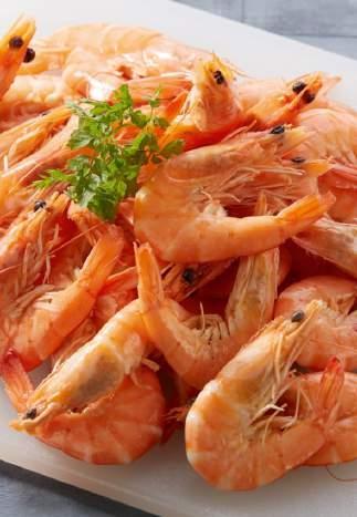 CREVETTES ROSES CUITES(7)(9) Entre 30 et 50 pièces par kg.