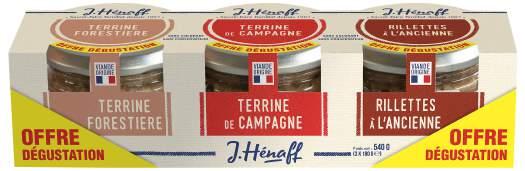 Au choix : Forestière, campagne, rillettes à l’ancienne ou Lapin, campagne, pâté Hénaff ou Campagne x2, canard.