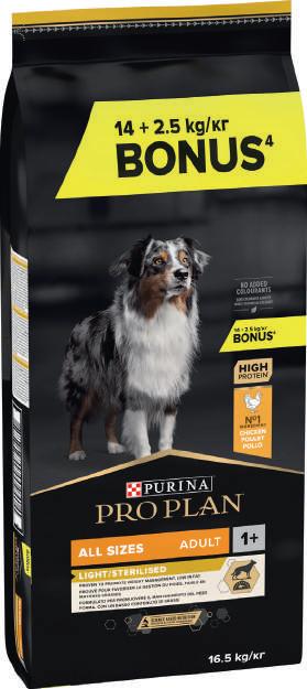 Spécialement formulées pour les chiens adultes stérilisés. Riche en poulet et riz. 16,50 kg. Le kg : 3,63 €.