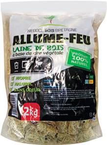 “NEGOCE BOIS BRETAGNE” Laine de bois à base de cire végétale. Minimum 150 rouleaux. Le sac de 2 kg. Le kg : 6,95 €.