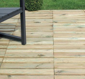 En pin sylvestre traité en autoclave classe III vert. Dim. : L. 40 x l. 40 x ép. 2,8 cm. Existe en dim. : L. 50 x l. 50 cm au prix de 2,90 € et en dim. : L. 100 x l. 100 cm au prix de 12,90 €.