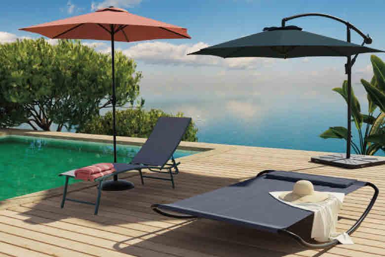 (1) Lests indispensables pour la stabilité de vos parasols excentrés. (2) Voir détails en points de vente. (3) En complément de la garantie constructeur, les produits présentés sont couverts par les garanties légales de conformité (articles L217-3 et suivants du code de la consommation) et des vices cachés (articles 1641 et suivants du code civil). Voir conditions de garanties en magasin.