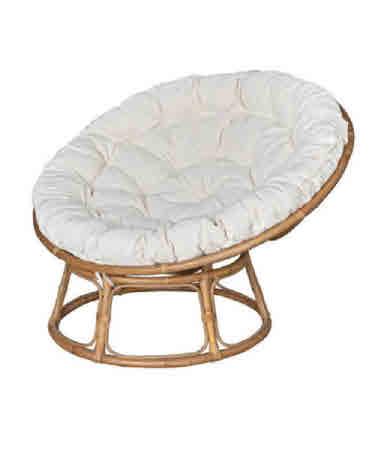 En rotin naturel. Coussin en polyester, 230 gr/m². Dim. : L. 115 x l. 115 x H. 89 cm.