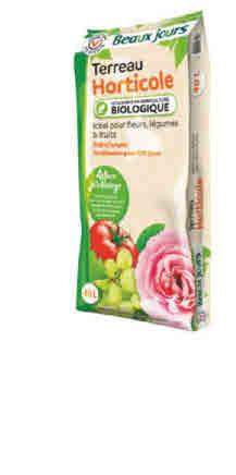 Idéal pour les fleurs, légumes et fruits. Fertilisation longue durée. Utilisable en Agriculture Biologique. 40 L. Le L : 0,14 €.