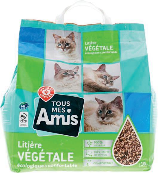 En copeaux de bois, 100 % végétale, non traitée, ultra absorbante, hygiénique et compostable.
