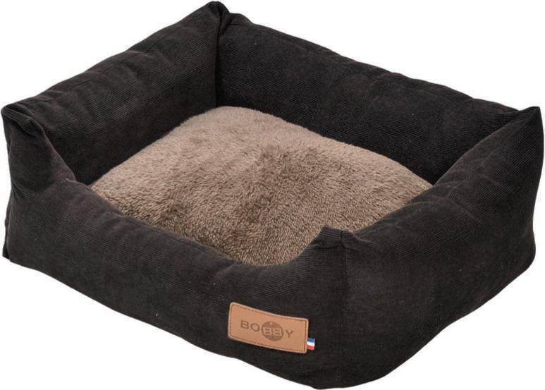 Corbeille carrée en velours et fourrure. Taille M. Dim. : 63 x 50 x 18 cm. Coussin réversible. Plusieurs tailles disponibles.(1)
