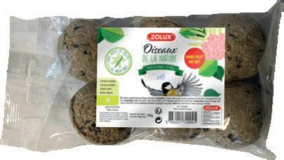 6 boules de 90 grammes constituées de céréales, huiles, graines et graisse, ces boules offrent aux oiseaux l'apport énergétique.