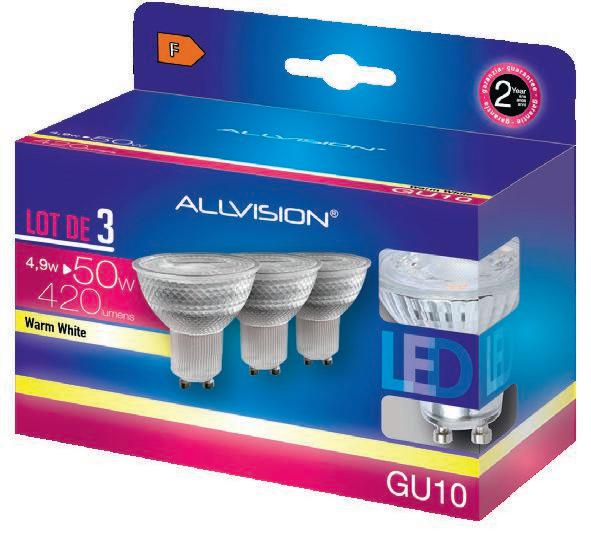 Culot GU10. Puissance : 4,9 W éclaire comme une ampoule incandescente de puissance 50 W. 420 lumens. Blanc chaud. Existe aussi en blanc froid au même prix.(6)