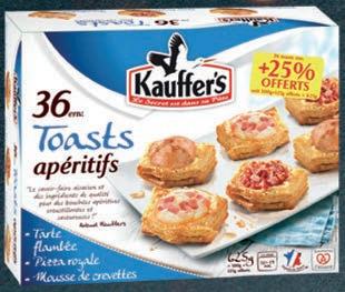 32 Canapés de la Mer (215 g) (le kg : 78,60 €), 48 Mini Canapés Région de France (240 g) (le kg : 70,42 €) ou 36 Canapés de Noël (250 g) (le kg : 67,60 €).